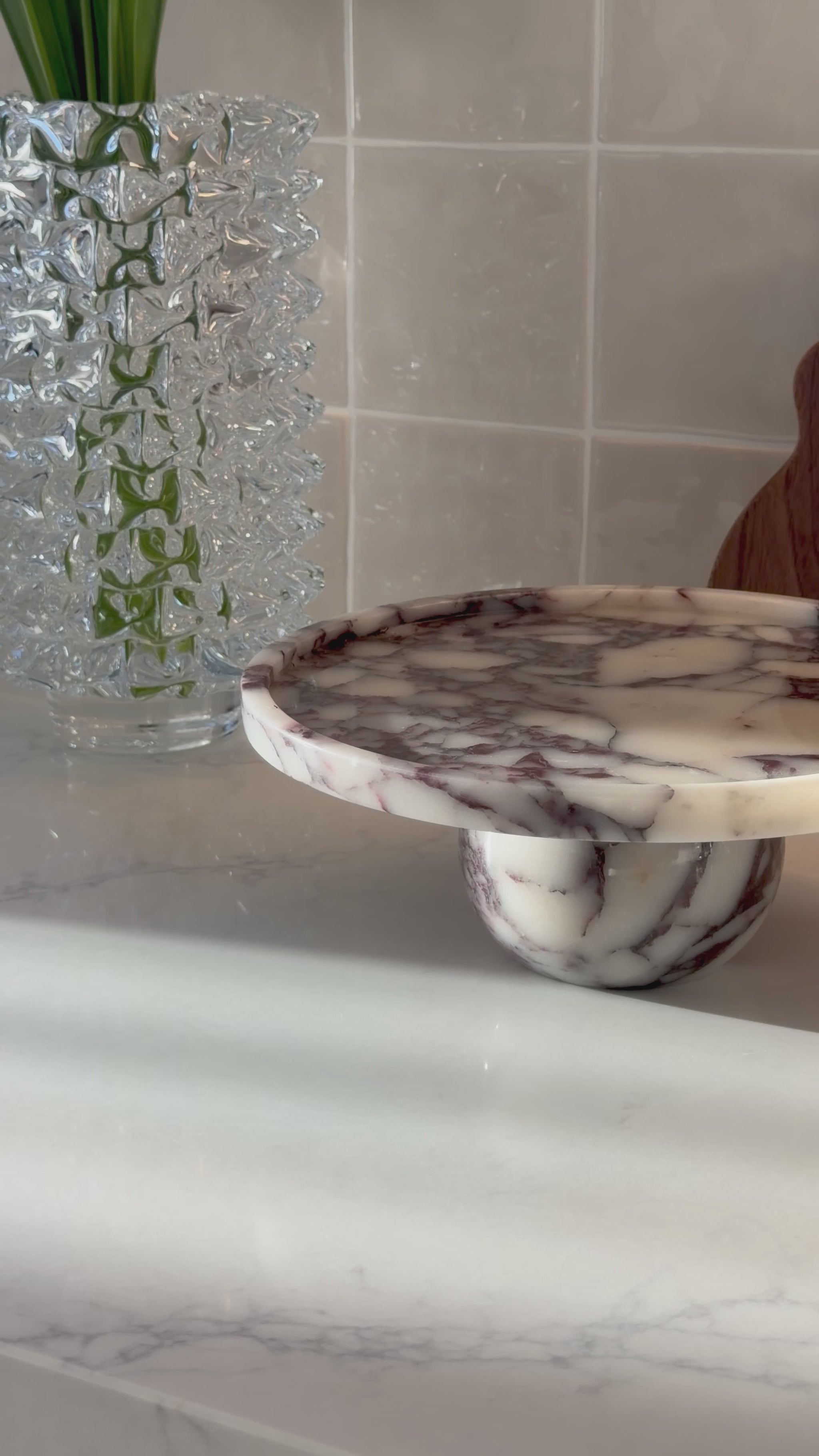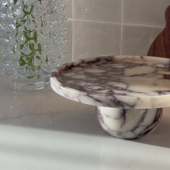 Hand-crafted from luxurious Calacatta Viola marble, this sculptural stand brings an effortless sense of refinement to any space. With its striking violet veining and smooth honed finish, it’s perfect as a fruit bowl, cake stand or a statement centrepiece on your kitchen island, dining table
